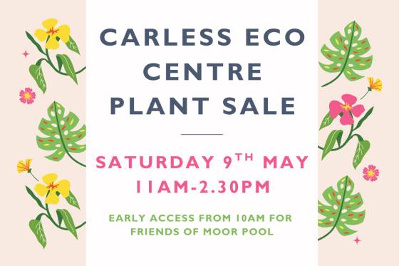 Taking place at the Carless Eco Centre, Moor Pool, the sale will include plants, cakes, drinks and tools. There will also be a free mud kitchen and sunflower seed planting for the kids. Cash and card payments accepted. All profits going back into conserving Moor Pool Estate.